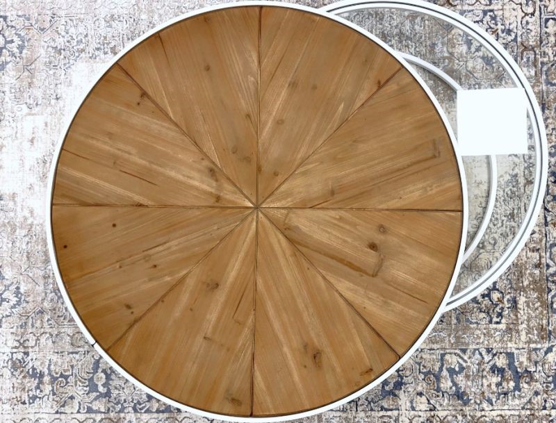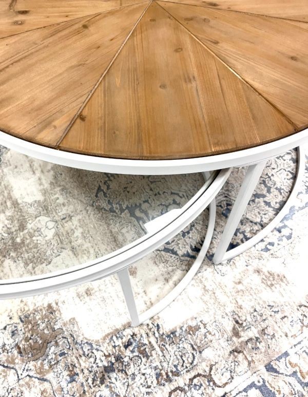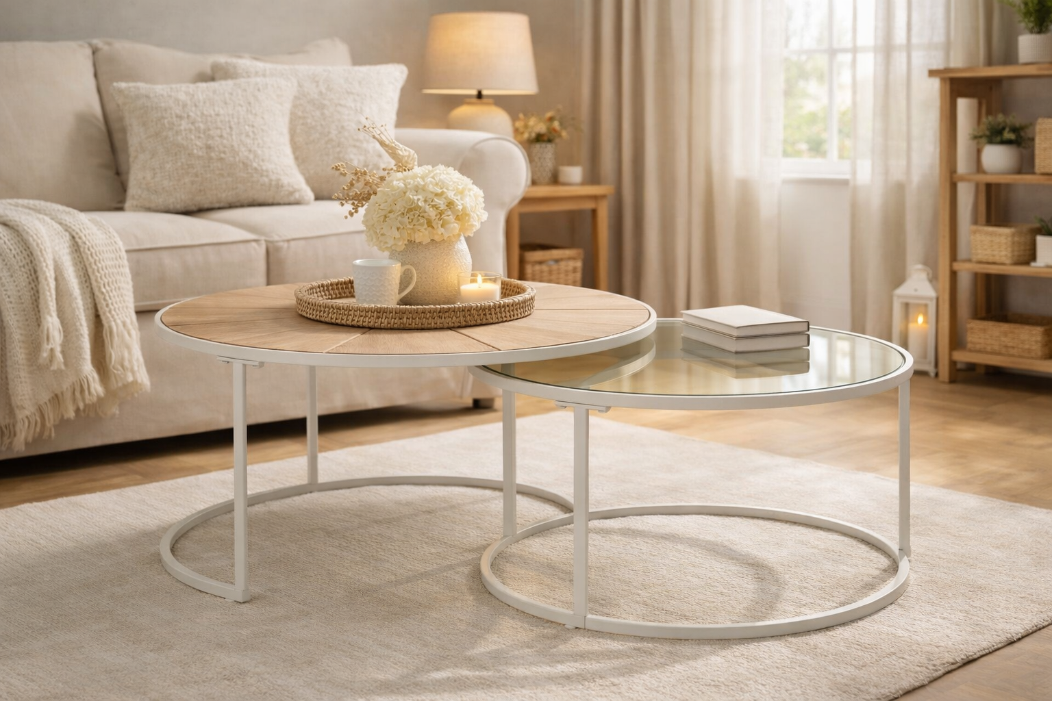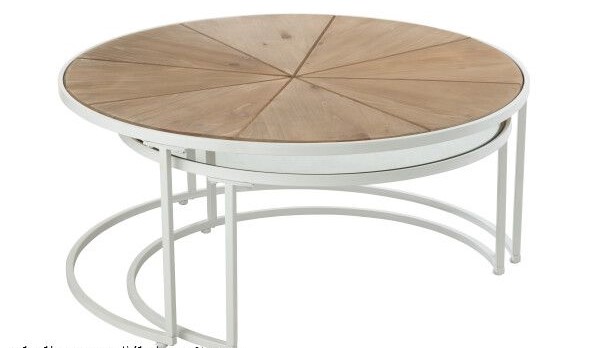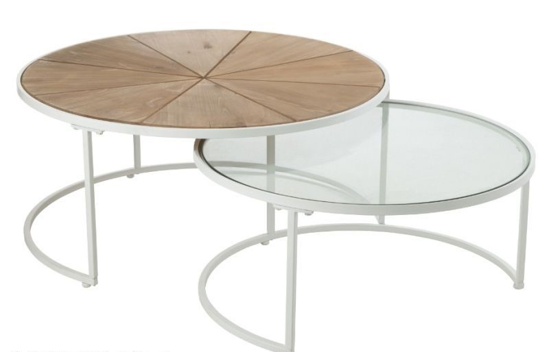 Sada 2 ks / kovová kostra / odkládací dřevěná ( borovice) a skleněná plocha