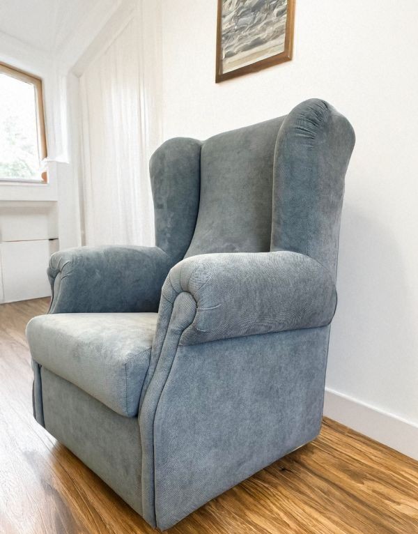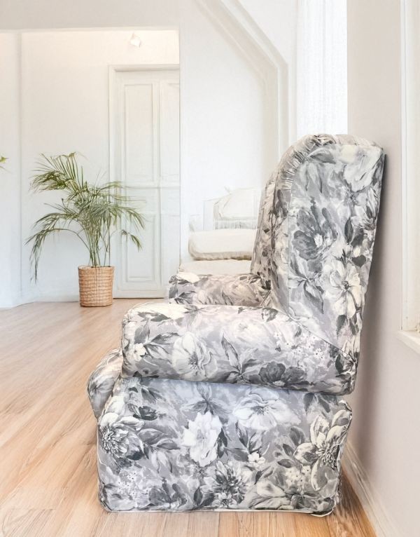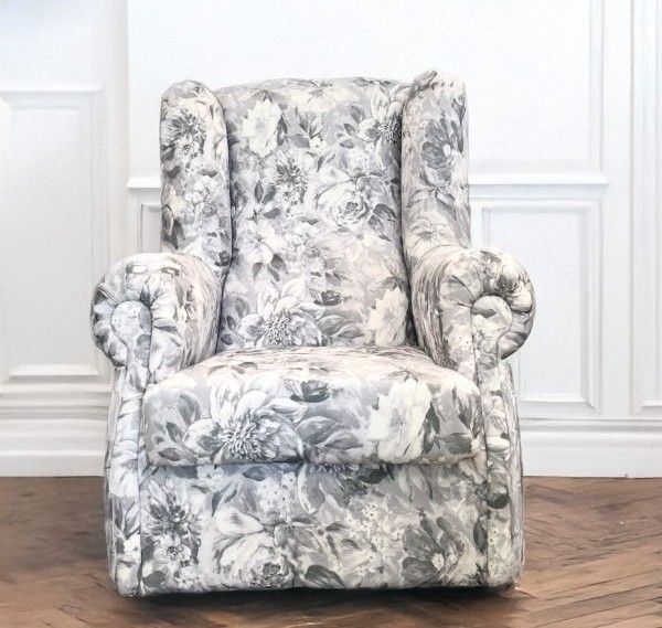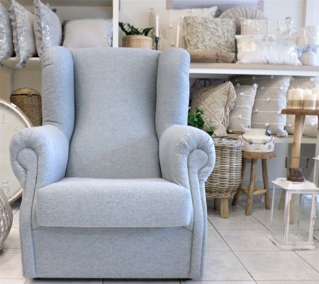 Kvalitní pohodlný ušák ruční výroby s dřevěnou kostrou, a čalouněním z kvalitní PUR pěny vyšší gramáže. Látka velmi pevná, kvalitní , v šedo - bílé barvě, s úpravou Easy Clean ( snadné čištění)
