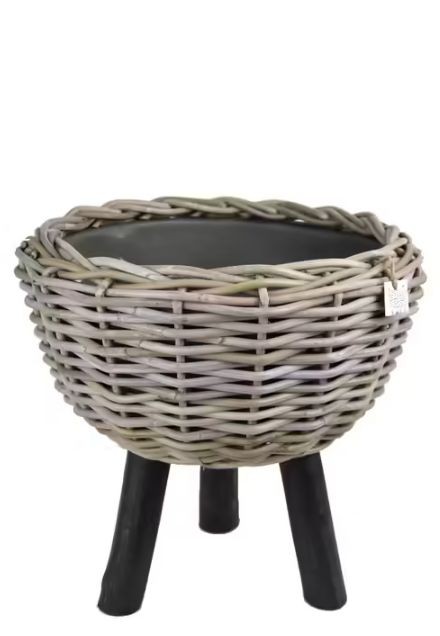 Bytelný z přírodního ratanu s nevyjímatelnou PVC nádobou uvnitř. Podnoží je z teakového dřeva.