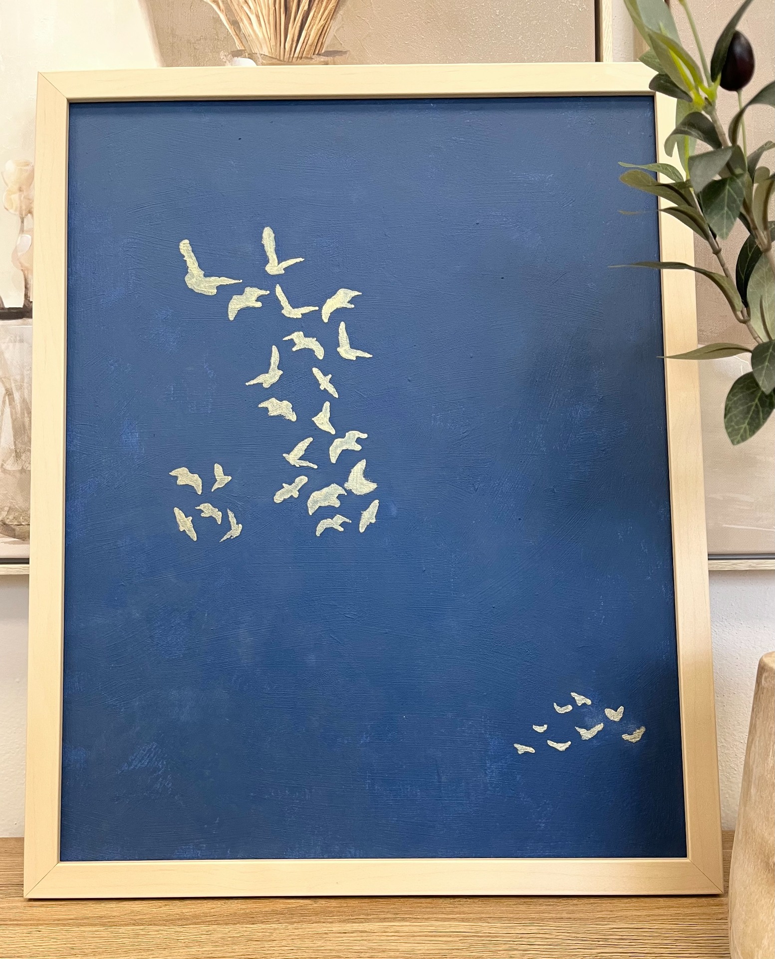 Minimalistický obraz s motivem ptáků na tmavém pozadí.Jemné siluety vytvářejí pocit lehkosti a volnosti, díky čemuž obraz působí klidně a harmonicky v jakémkoli interiéru.Rozměr: 40 × 50 cmCena: 1290 KčOsobní převzetí na prodejně nebo zaslání do Balíkovny...75 Kč / na adresu...105 Kč