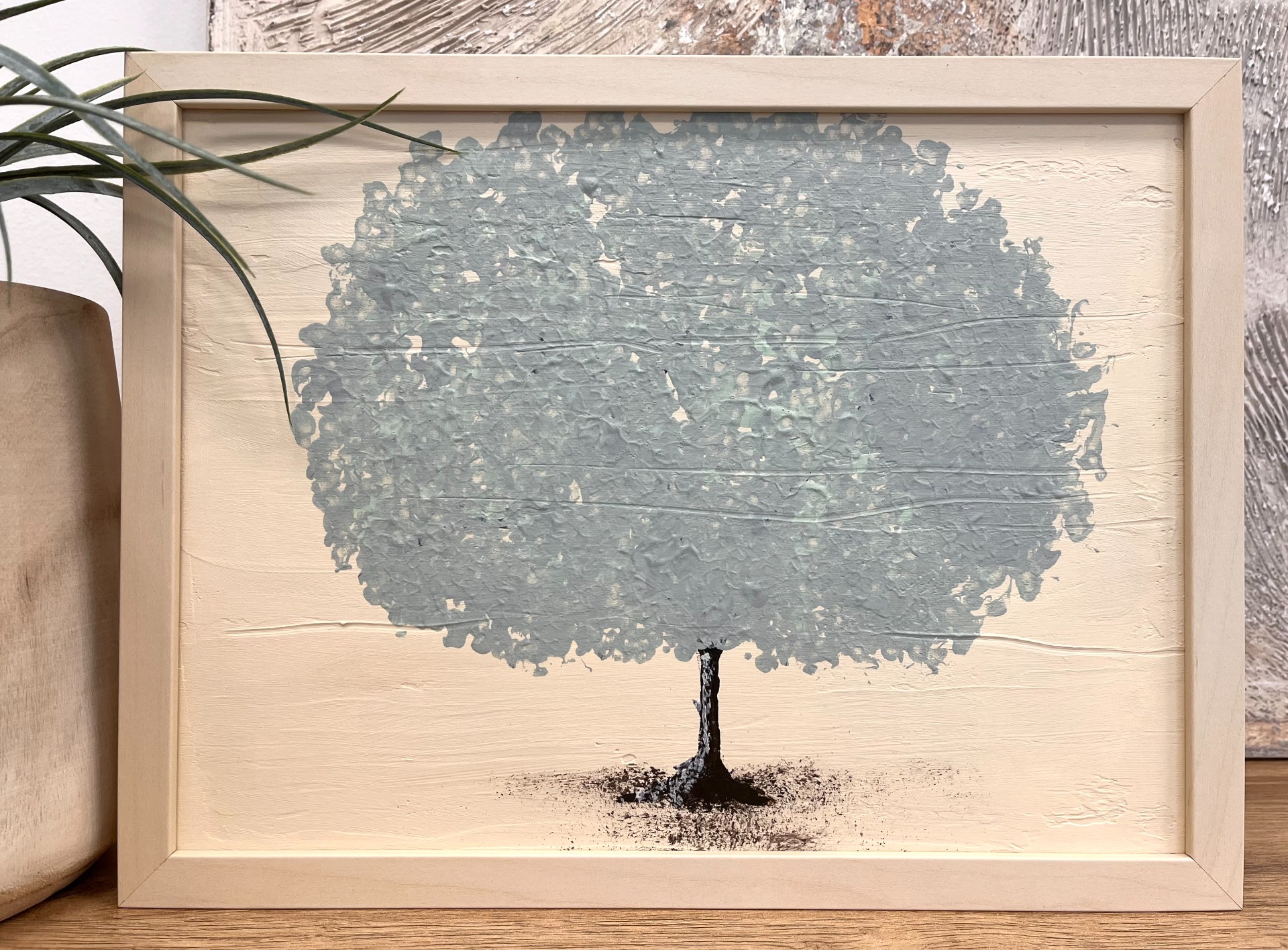 Minimalistický motiv stromu v neutrálních tónech. Jemná struktura vytváří příjemný 3D efekt a obraz působí klidně a moderně.
