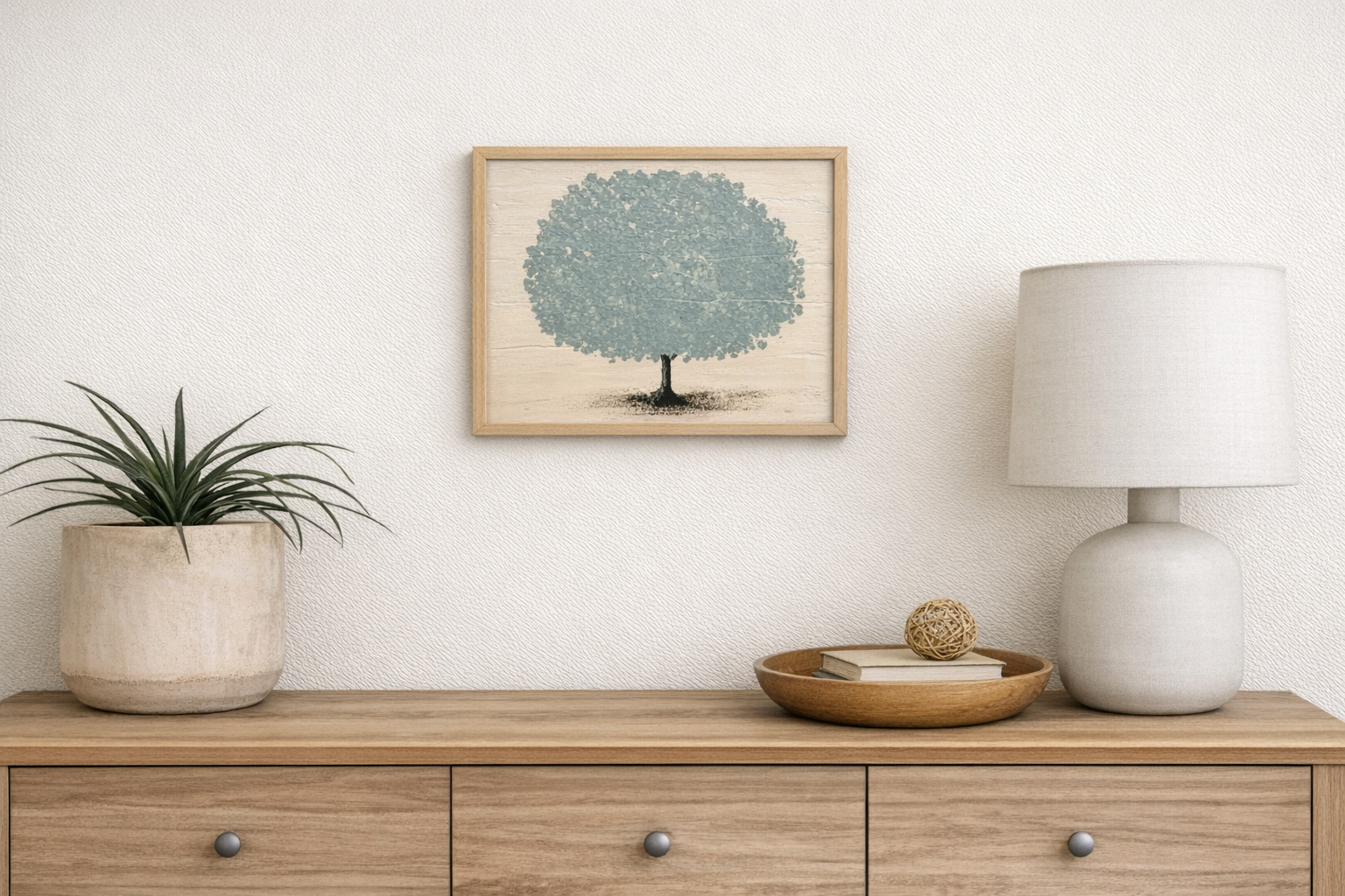 Hodí se do světlých i přírodních interiérů, nad komodu, křeslo nebo do vstupního prostoru.