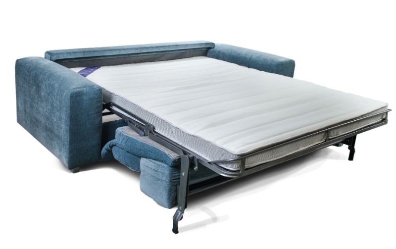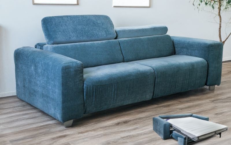 Rozkládací pohovka vysokého standardu, postavená na pevné konstrukci z dřevotřískové desky a vybavená precizním rozkládacím mechanismem. Součástí je zabudované plnohodnotné lůžko určené pro každodenní spaní, doplněné kvalitní matrací z PUR pěny s vysokou hustotou. Spací plocha je zcela oddělená od sedací části, takže nabízí skutečný komfort při dlouhodobém používání.