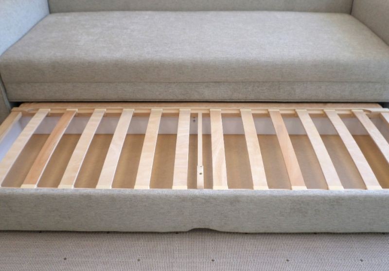 Po sejmutí opěrných polštářů můžete využít i jednolůžko 80 × 200 cm bez nutnosti rozkládání.