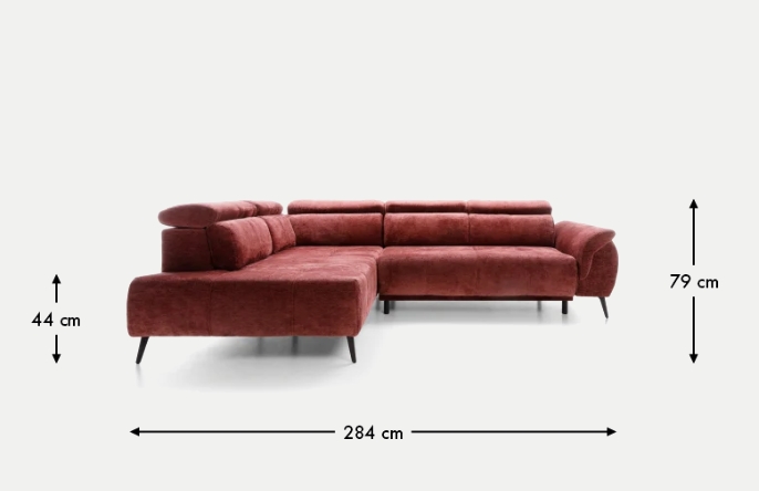 Genova II je elegantní rohová pohovka s moderním vzhledem a praktickými funkcemi. Má měkké, pohodlné sezení, nastavitelnou opěrku hlavy a možnost prodloužení sedáku až o 25 cm, takže nabízí více prostoru pro relaxaci. Precizní dvojité šití, zaoblené linie a vysoké dekorativní nohy jí dodávají luxusní charakter. Součástí je také USB port pro pohodlné nabíjení zařízení. Díky nadčasovému designu se snadno stane dominantou obývacího pokoje a dlouhodobým místem pro každodenní odpočinek.
