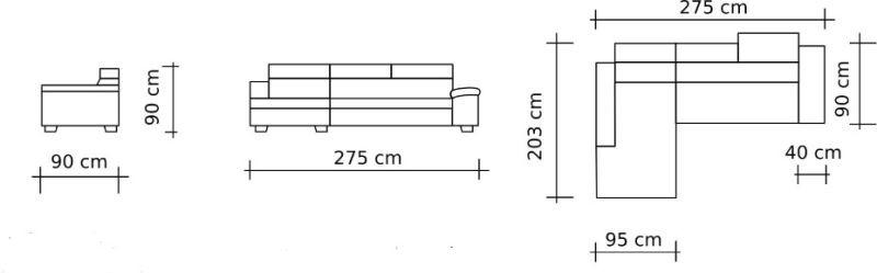 Lůžko 215 × 137 cm, výška sedu 45 cm, hloubka sedu 60 cm.
