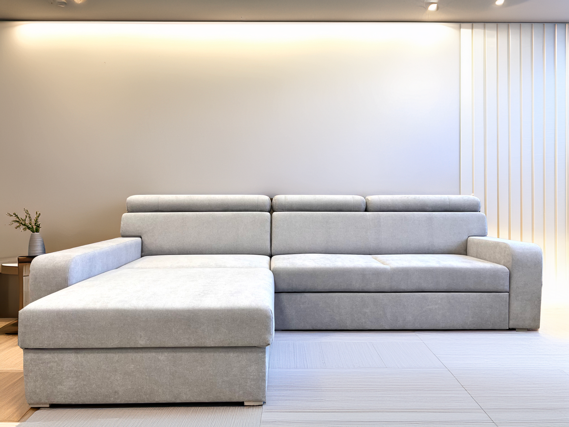 Nová rohová sedačka Dagmar – elegantní kousek s velkorysou metrovou lenoškou a praktickým úložným prostorem po celé její délce. Díky rozkládací funkci poskytuje pohodlné řešení pro každodenní i příležitostné spaní. Čalounění je složeno z vlnitých pružin, husté PUR pěny a studené pěny, což zajišťuje nejen maximální komfort, ale i dlouhou životnost sedáku. Dagmar je potažena špičkovou šedou látkou Odesa s nešpinivou úpravou, která usnadňuje její údržbu.Skladem v šedé barvě / levý roh. Na objednávku do cca 10 týdnů v potahu dle vlastního výběru u nás na prodejně.