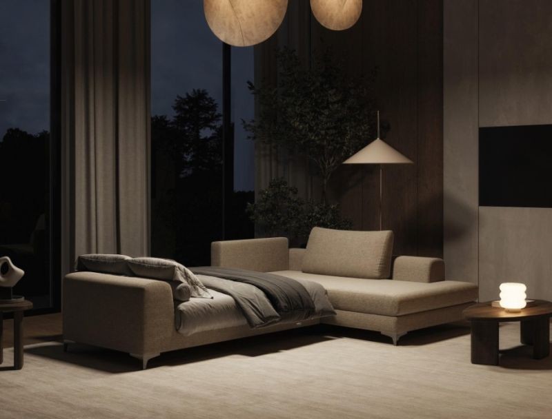 Kovová, vyvýšená podnož je ideální pro domácnosti s podlahovým topením – umožňuje volné proudění vzduchu pod sedačkou. Pohovku lze navíc snadno rozložit na dvoulůžko pro příležitostné spaní a nechybí ani praktický menší úložný prostor.