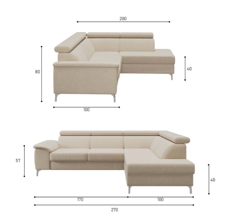 Rohová sedací souprava Monika je moderním řešením pro každý obývací pokoj. Polohovatelná opěradla zad zaručují, že si každý najde své pohodlí. Velkorysé sezení s hloubkou 60 cm lze navíc prodloužit přibližně o 17 cm pomocí elektrického výsuvného mechanismu, aktivovaného tlačítky na boční opěrce – vznikne tak i pohodlné lůžko pro jednu osobu.