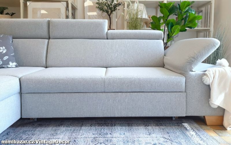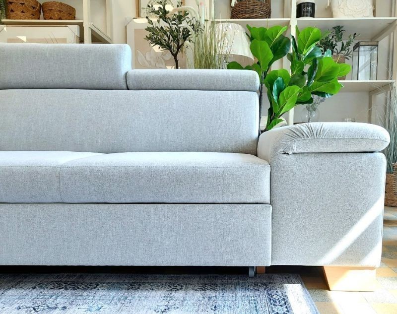 Rohová pohovka s lenoškou, polohovatelnými opěrkami hlavy, rozkladem a úložným prostorem. Čalounění je včetně pružinového jádra, husté PUR pěny a studené pěny, která je tvarově stálá, extra pružná a prodlužuje životnost pohovky. Kostra je zhotovena z bukového a smrkového dřeva v kombinaci s DTD. Roma je celočalouněná, lze ji umístit i v prostoru, nejen u stěny. Podnoží je vyrobeno z masivu v barvě světlého buku.